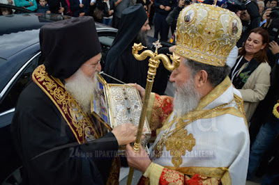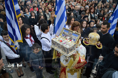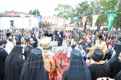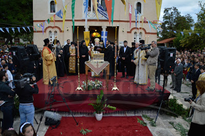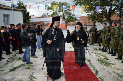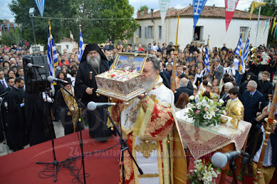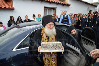 Με τιμές αρχηγού κράτους έγινε πριν από λίγο η υποδοχή της Τιμίας Ζώνης από την Ιερά Μεγίστη Μονή Βατοπαιδίου στο χωριό Βασιλικό, γενέτειρα του Σεβ. Μητροπολίτου Χαλκίδος κ. Χρυσοστόμου.