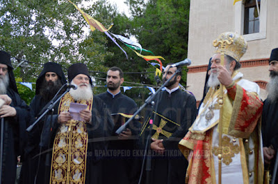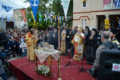 Τέλος τον λόγο έλαβε ο Ηγούμενος Εφραίμ απευθυνόμενος προς του χιλιάδες πιστούς, μεταξύ άλλων ανέφερε: “Ήρθαμε και φέραμε την Αγία Ζώνη από την θεοτοκοσκέπαστη Μονή του Βατοπαιδίου, ώστε να γίνει πρόξενος πενυματικού συναγερμού.”