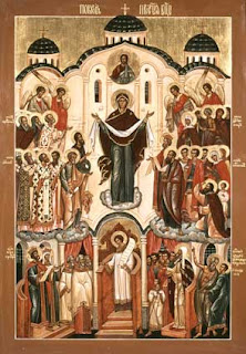Τῇ αὐτῇ ἡμέρᾳ τὴν ἀνάμνησιν ποιούμεθα τῆς Ἁγίας Σκέπης τῆς Ὑπεραγίας Δεσποίνης ἡμῶν Θεοτόκου καὶ Ἀειπαρθένου Μαρίας ἤτοι τοῦ ἱεροῦ αὐτῆς Μαφορίου, τοῦ ἐν τῷ σορῷ τοῦ Ἱεροῦ Ναοῦ τῶν Βλαχερνῶν, ὅτε ὁ Ὅσιος Ἀνδρέας ὁ διὰ Χριστὸν σαλὸς κατεῖδεν ἐφηπλωμένην αὐτὴν ἄνωθεν καὶ πάντας τοὺς εὐσεβεῖς περισκέπουσαν».